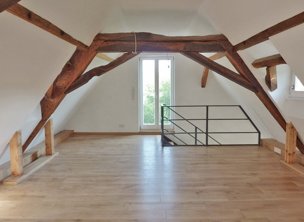 Ein ehemaliger Stall- bzw. Gesindebereich, innerhalb der Gesamtanlage des historischen Anwesens, wurde vom Rohbauzustand in eine moderne 1-Personen-Wohnung umgewandelt.